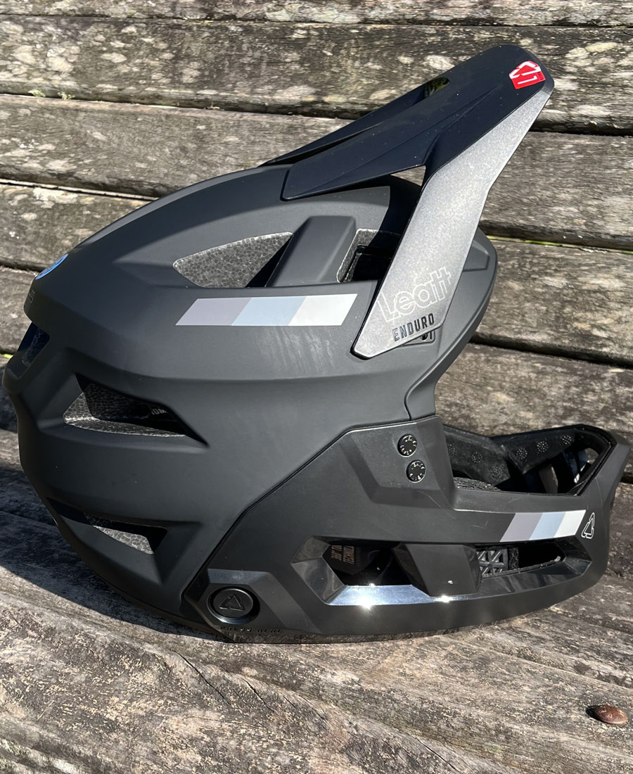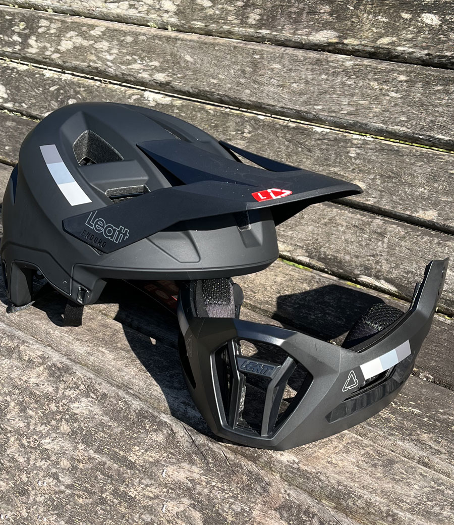 Capacete Leatt Enduro 2.0 possui design com queixeira removível, que se adapta às diferentes situações e necessidades do ciclista, proporcionando conforto nas subidas sem a queixeira ou nas decidas para um estilo full-face com o máximo em proteção, oferecendo ao ciclista dois capacetes em um só.