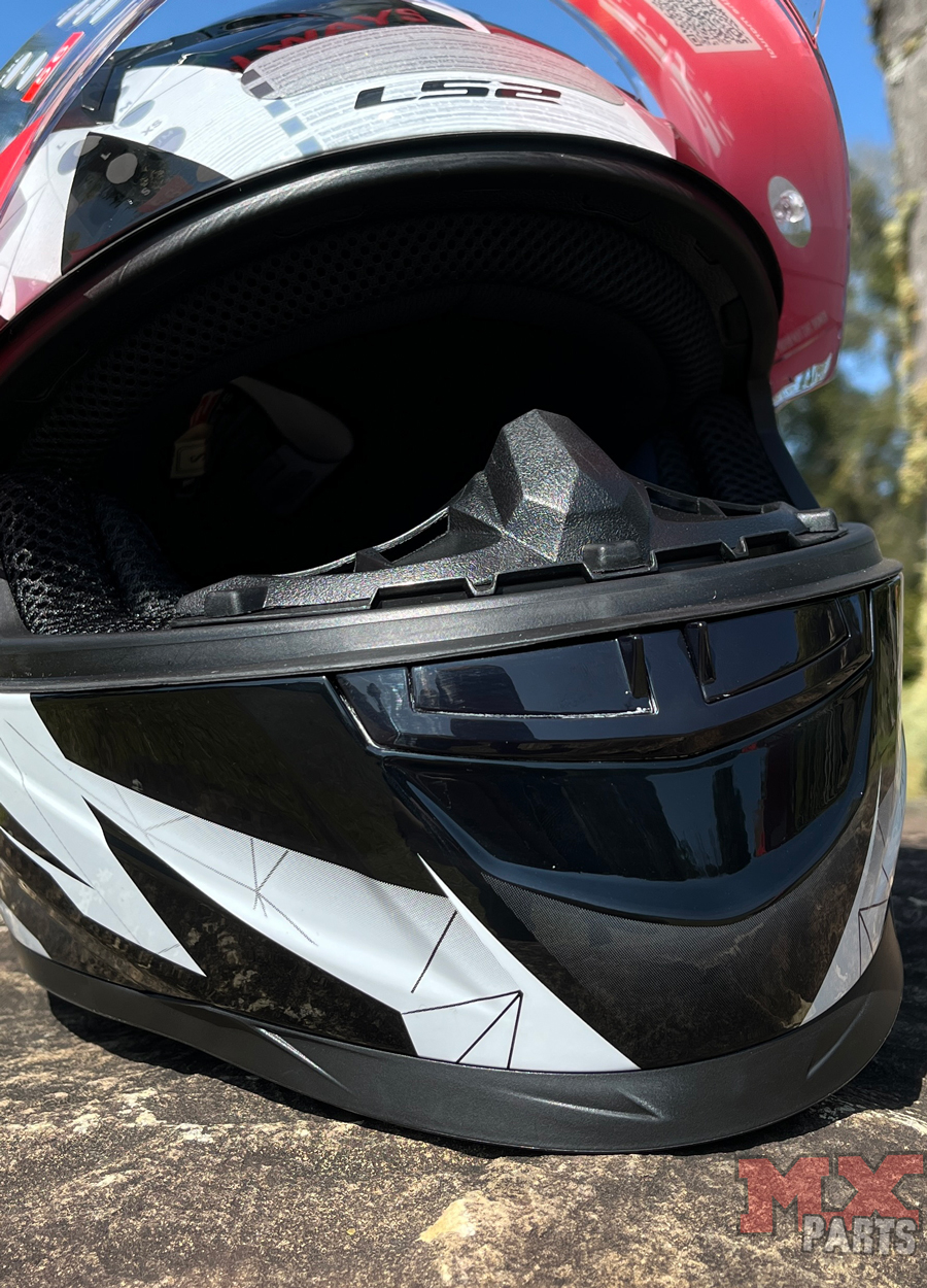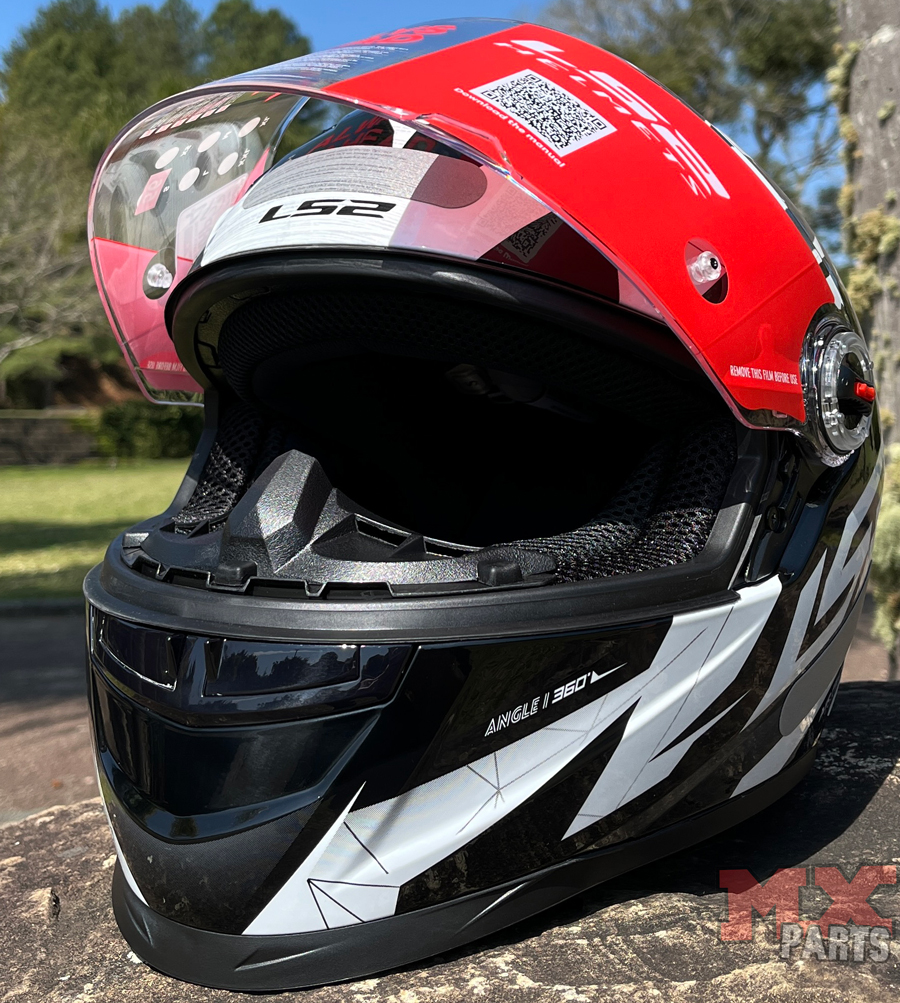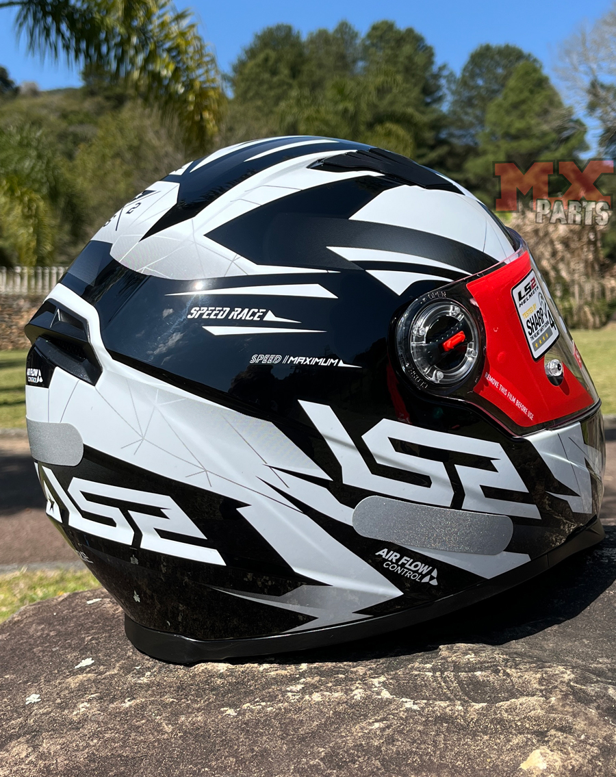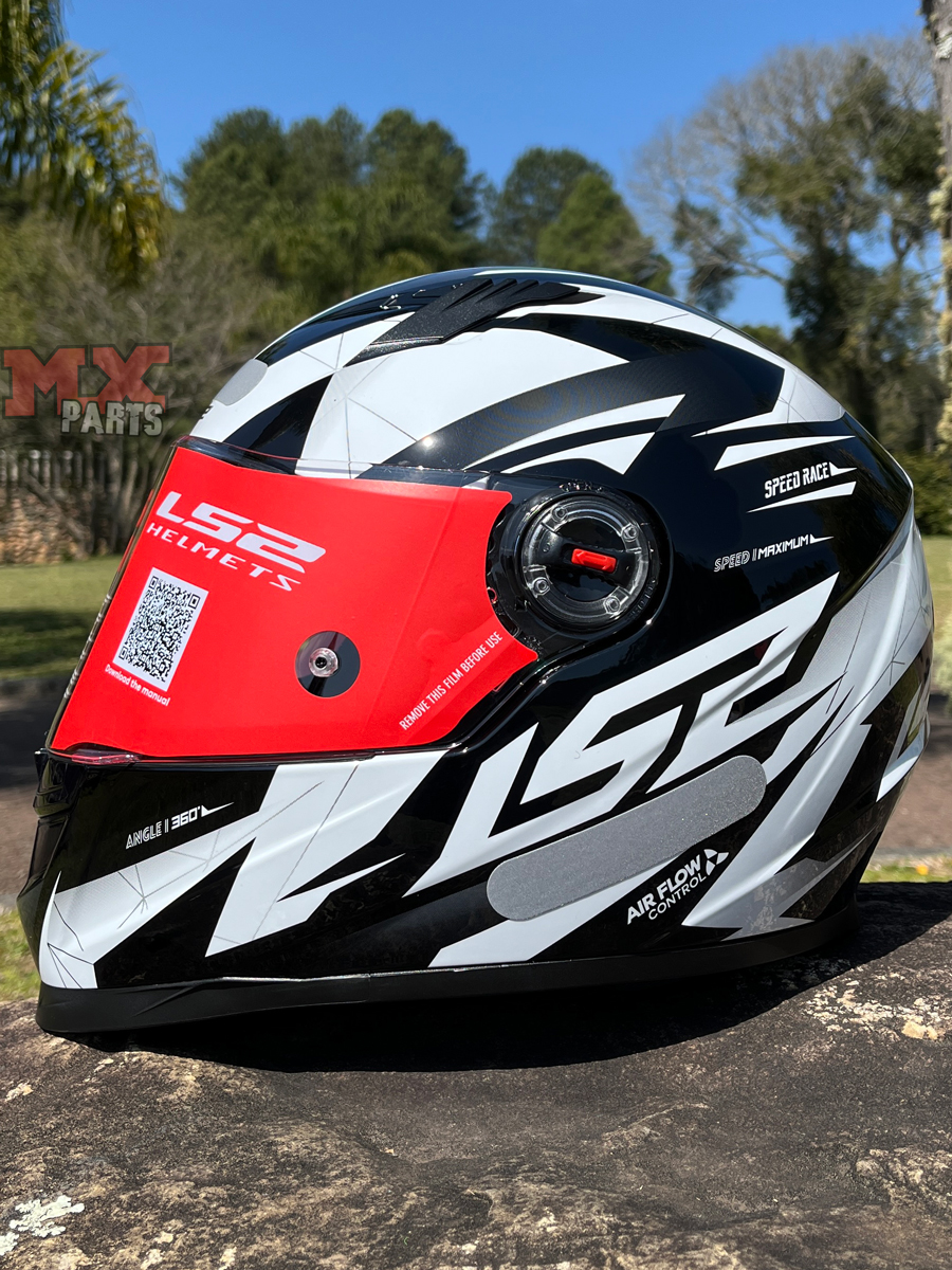 O sistema de troca da viseira é baseado no exclusivo LS2 Quick Release System, permitindo substituição rápida e prática, sem a necessidade de ferramentas, ideal para o piloto que deseja alternar entre viseiras transparentes, fumês e espelhadas.