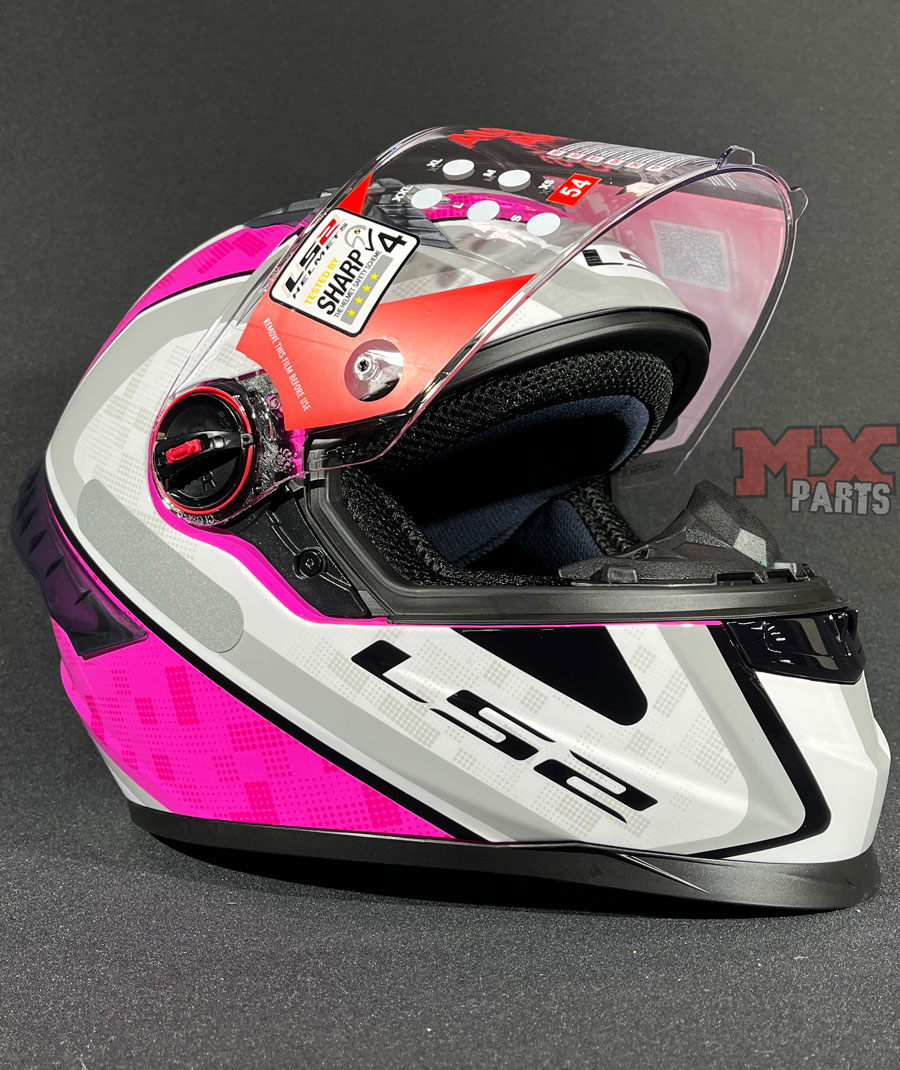 O sistema de troca rápida permite substituir a viseira de forma simples e eficiente, sem necessidade de ferramentas, enquanto o acionamento duplo proporciona ainda mais praticidade no dia a dia, facilitando o ajuste mesmo durante a pilotagem e com as luvas de pilotagem.