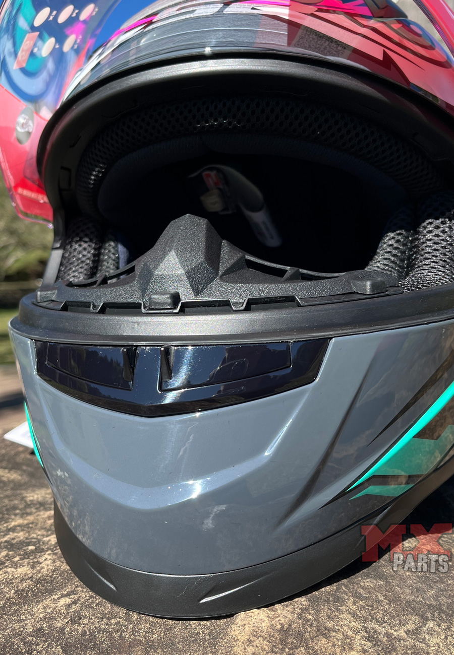 • Narigueira - projetada para direcionar o fluxo de ar exalado para fora da viseira, ajudando a reduzir o embaçamento durante a pilotagem, especialmente em dias frios ou com alta umidade