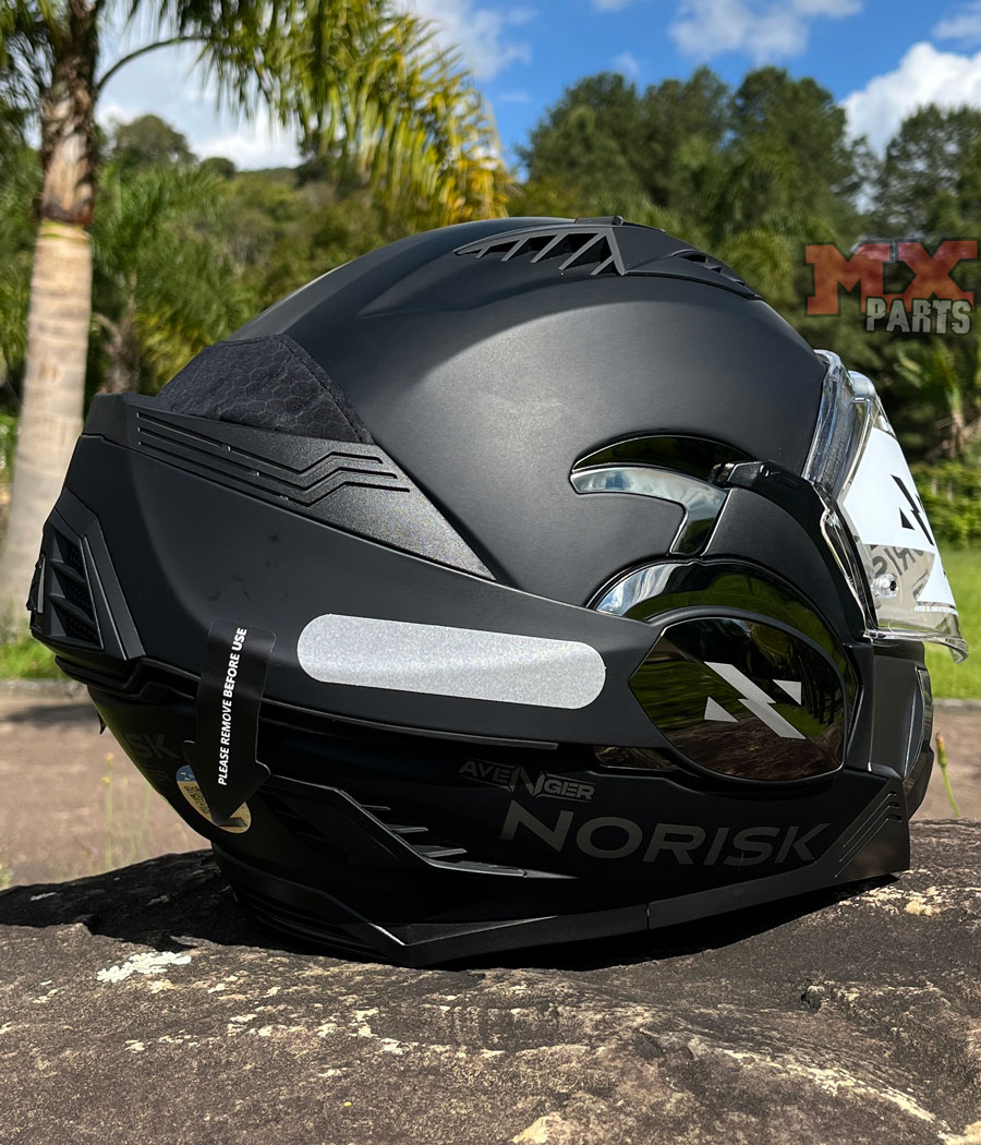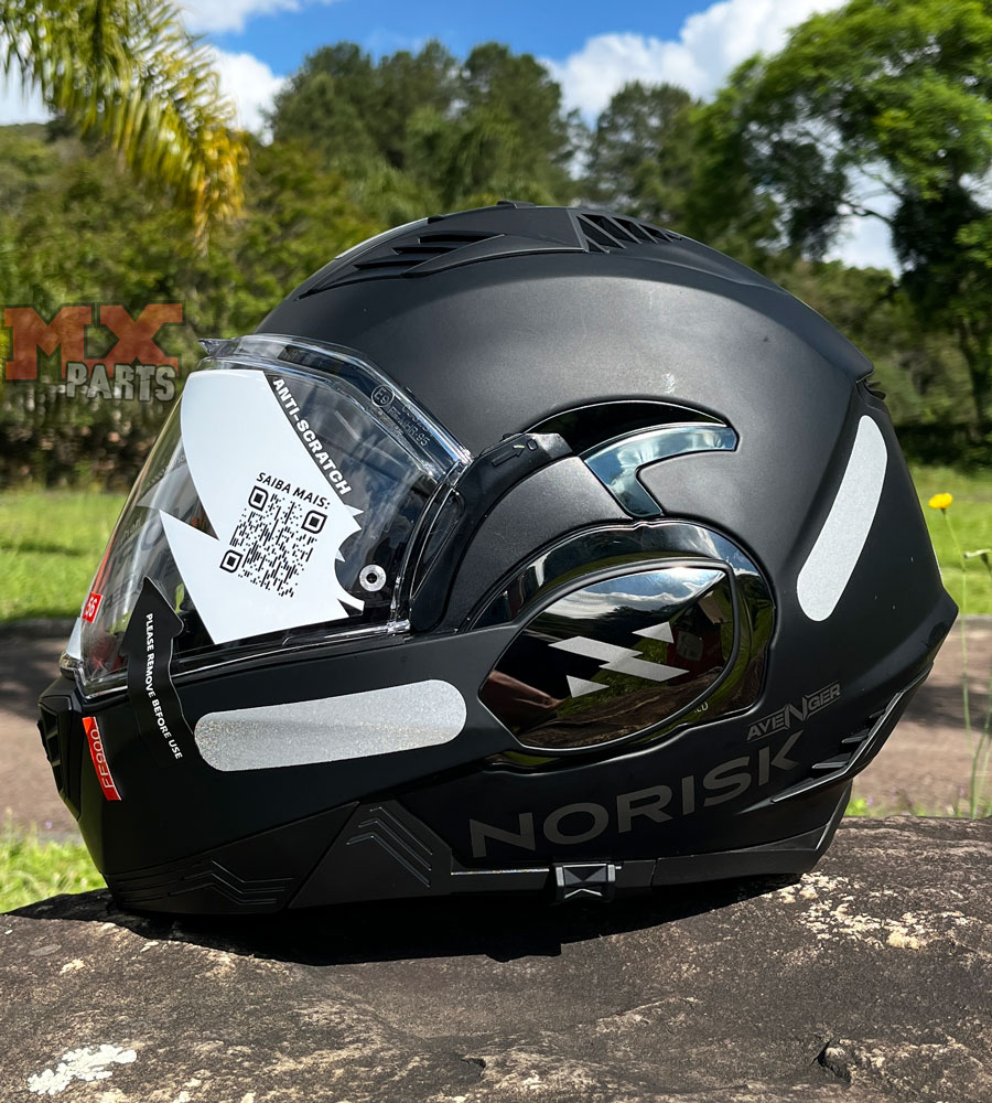 No aspecto da segurança, o Capacete Articulado Norisk Avenger ostenta a homologação europeia PJ, atestando proteção de alto nível tanto com o capacete aberto quanto fechado.