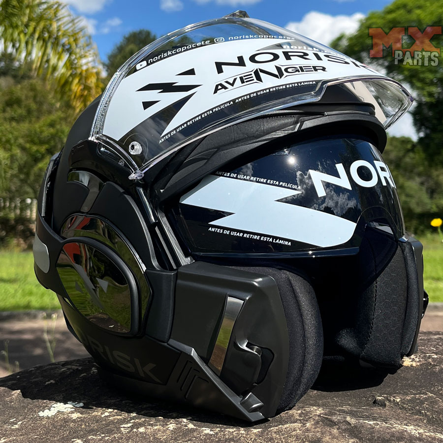 Com um sistema de abertura 180º inovador, o Capacete Articulado Norisk Avenger proporciona total praticidade na hora de vestir e/ou retira-lo, além de permitir curtir a liberdade de pilotar com o rosto descoberto. Essa funcionalidade moderna coloca o modelo Avenger em um patamar premium no universo dos capacetes articulados.