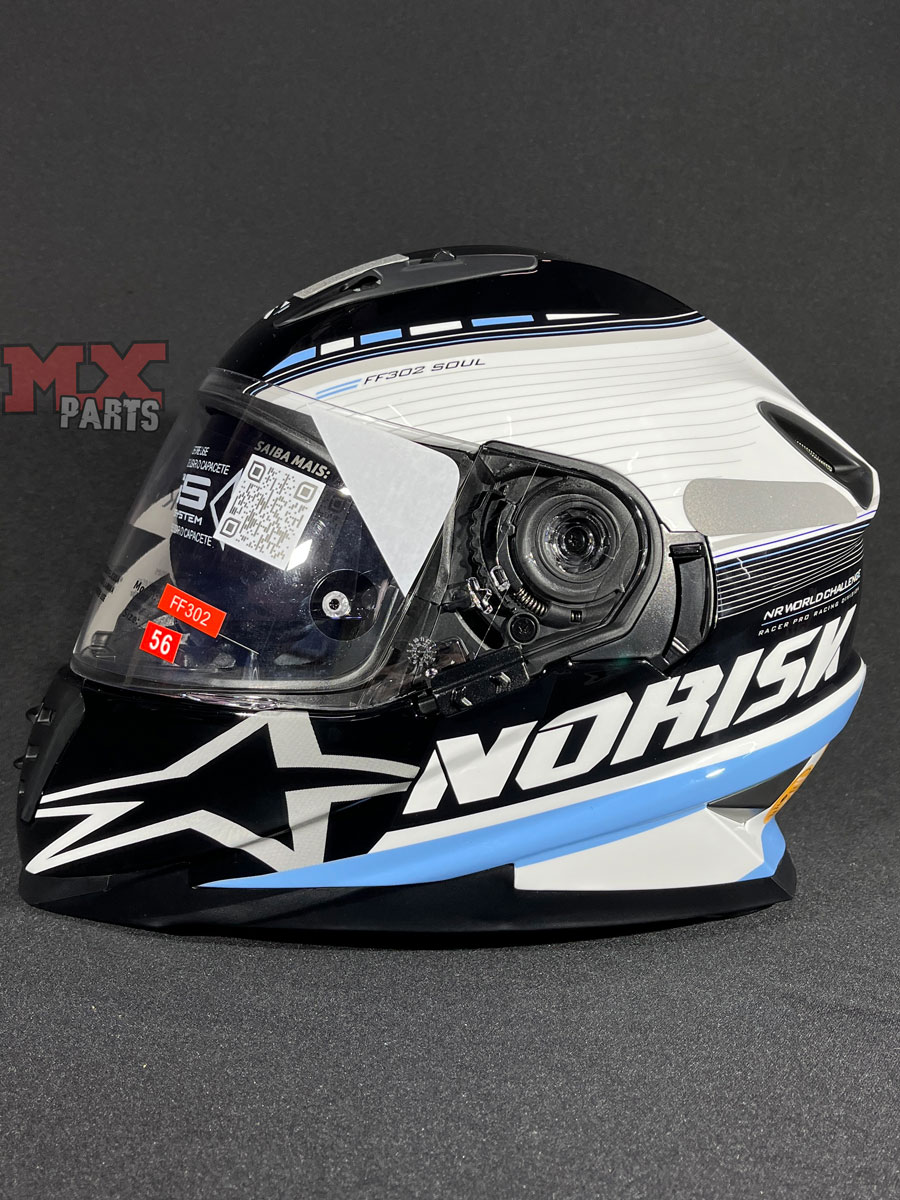Pensando na visibilidade e proteção ocular do motociclista, o Capacete Norisk FF302 Soul é equipado com uma viseira de 2mm de espessura, produzida em policarbonato resistente com tratamento anti-risco e proteção contra raios UV.