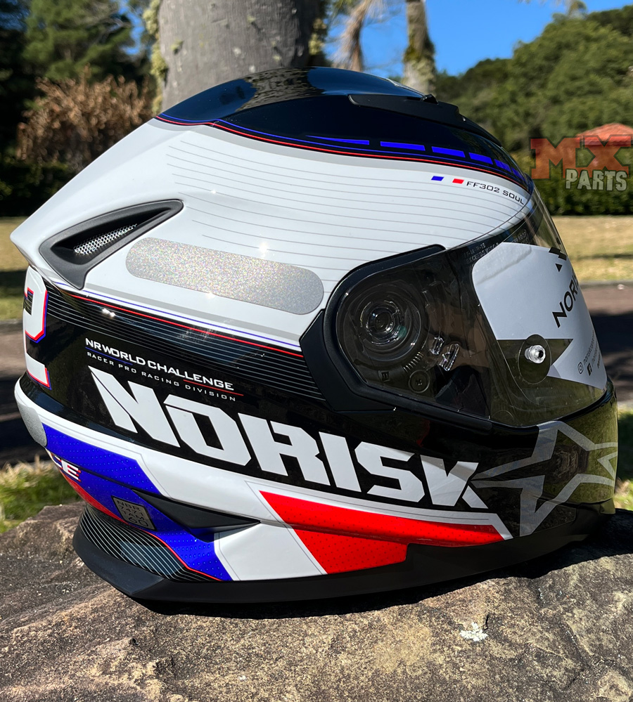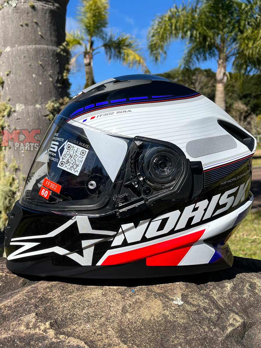 Além disso, o Capacete on-road Norisk FF302 Soul França conta com uma viseira solar interna, que pode ser acionada facilmente por um botão lateral, especialmente útil para quem pilota sob sol forte, pois elimina a necessidade de usar óculos escurose oferece uma solução prática e integrada para proteção contra a claridade excessiva.