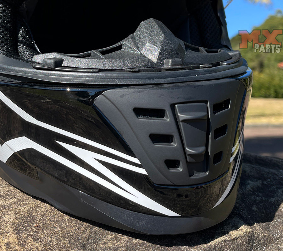 O sistema de articulação da viseira principal permite abertura em até seis estágios, possibilitando ao piloto escolher o melhor nível de ventilação e visibilidade conforme o clima ou o tipo de trajeto.