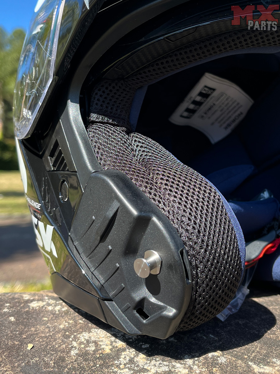 Outro ponto de destaque é o espaço interno otimizado para permitir o uso de óculos de grau ou de sol, graças às canaletas laterais. Tudo isso é complementado pelo fecho micrométrico prático, que proporciona um ajuste rápido e seguro, adaptando-se às necessidades de cada motociclista.