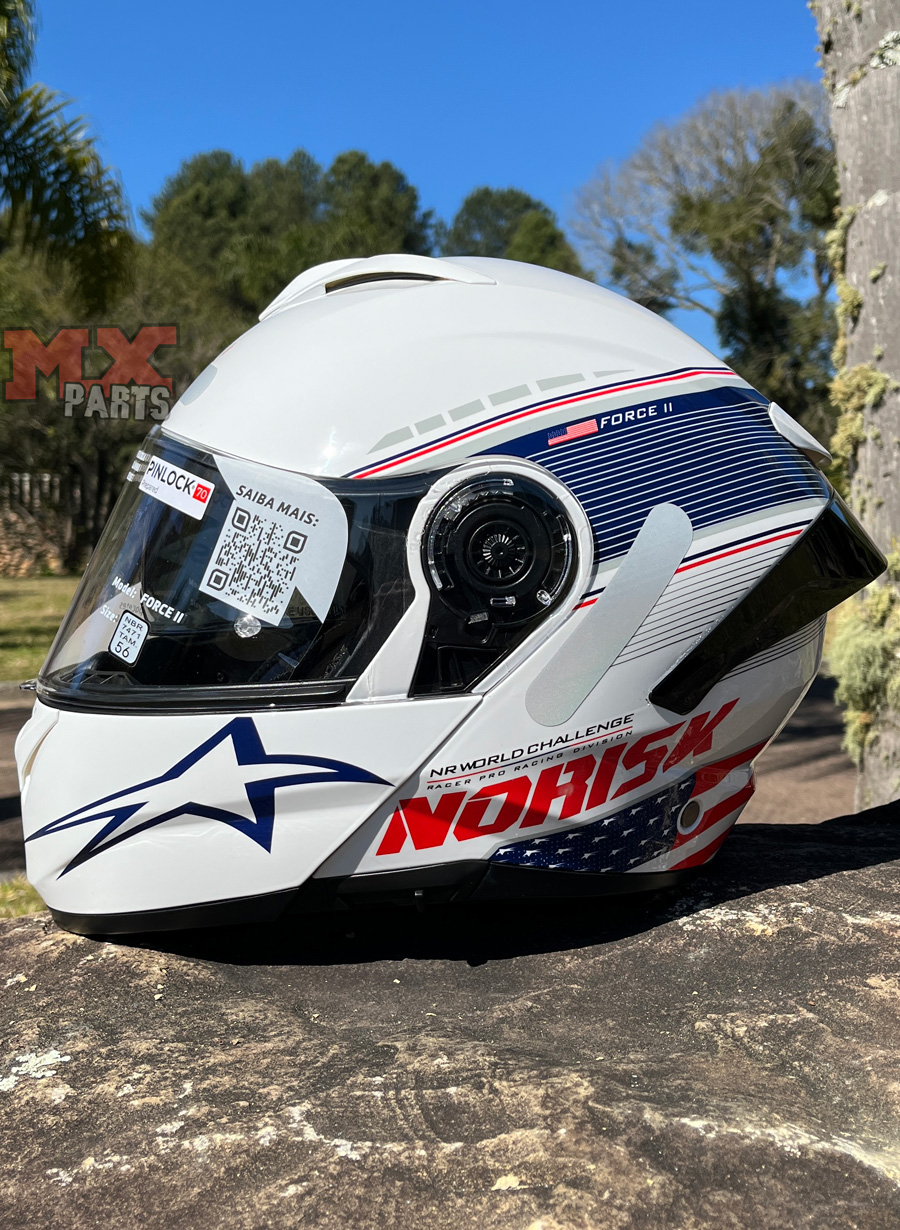 O Capacete Norisk Force II Articulado Grand Prix USA foi desenvolvido para os motociclistas que buscam a combinação perfeita entre segurança, resistência e praticidade no uso diário ou em viagens.