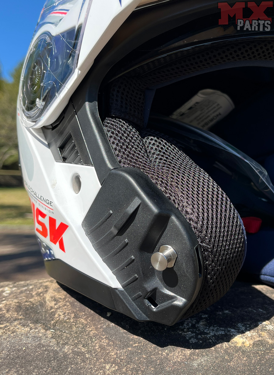 Outro ponto de destaque é o espaço interno otimizado para permitir o uso de óculos de grau ou de sol, graças às canaletas laterais. Tudo isso é complementado pelo fecho micrométrico prático, que proporciona um ajuste rápido e seguro, adaptando-se às necessidades de cada motociclista.