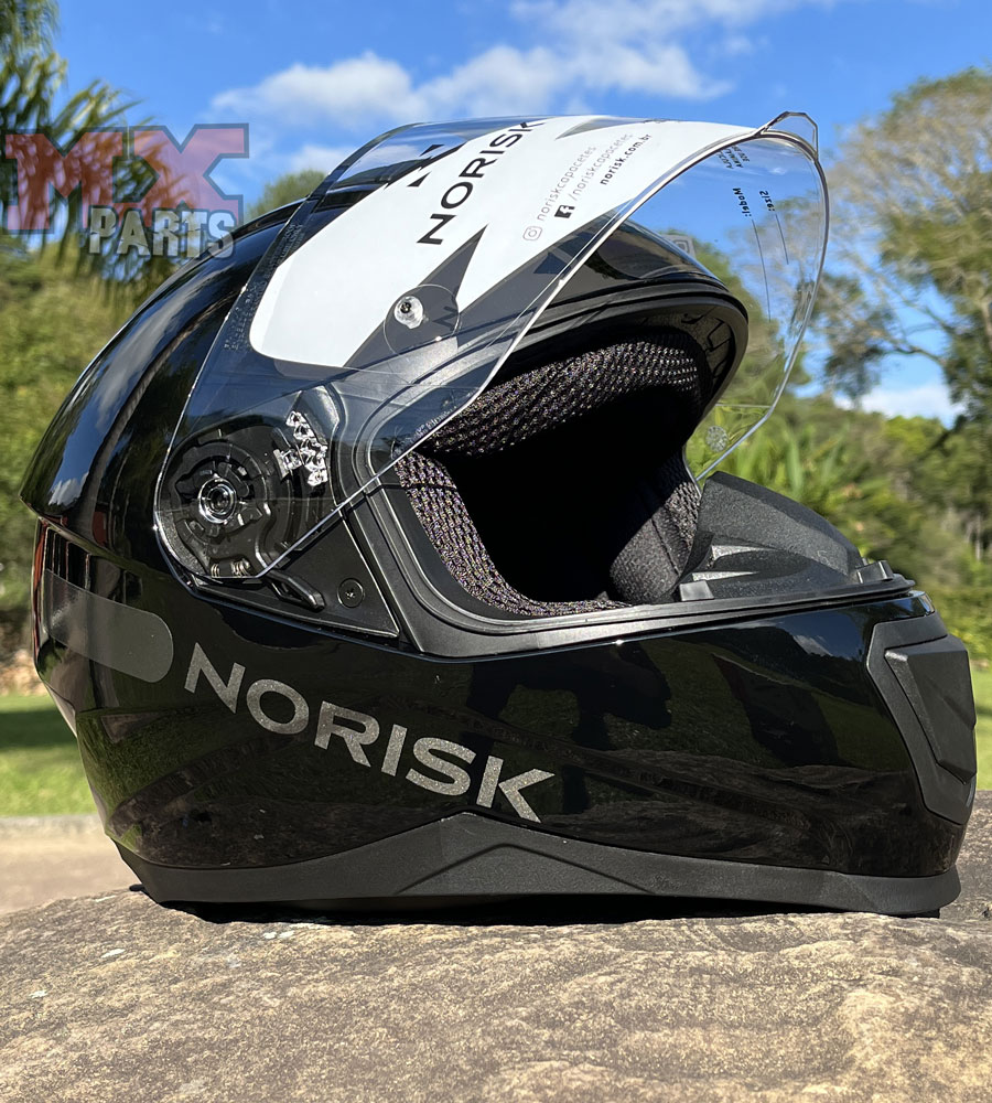 Pensando na visibilidade e proteção ocular do motociclista, o Capacete Norisk Razor é equipado com uma viseira de 2mm de espessura, produzida em policarbonato resistente com tratamento anti-risco e proteção contra raios UV.