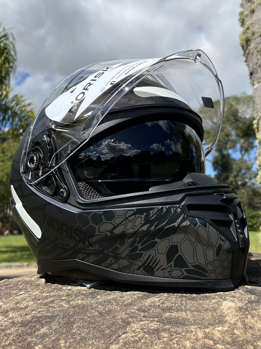 O Capacete Norisk Strada II Cobra foi desenvolvido com atenção total à resistência e à aerodinâmica, atributos indispensáveis para o motociclista on-road que busca segurança e performance em estradas ou vias urbanas.