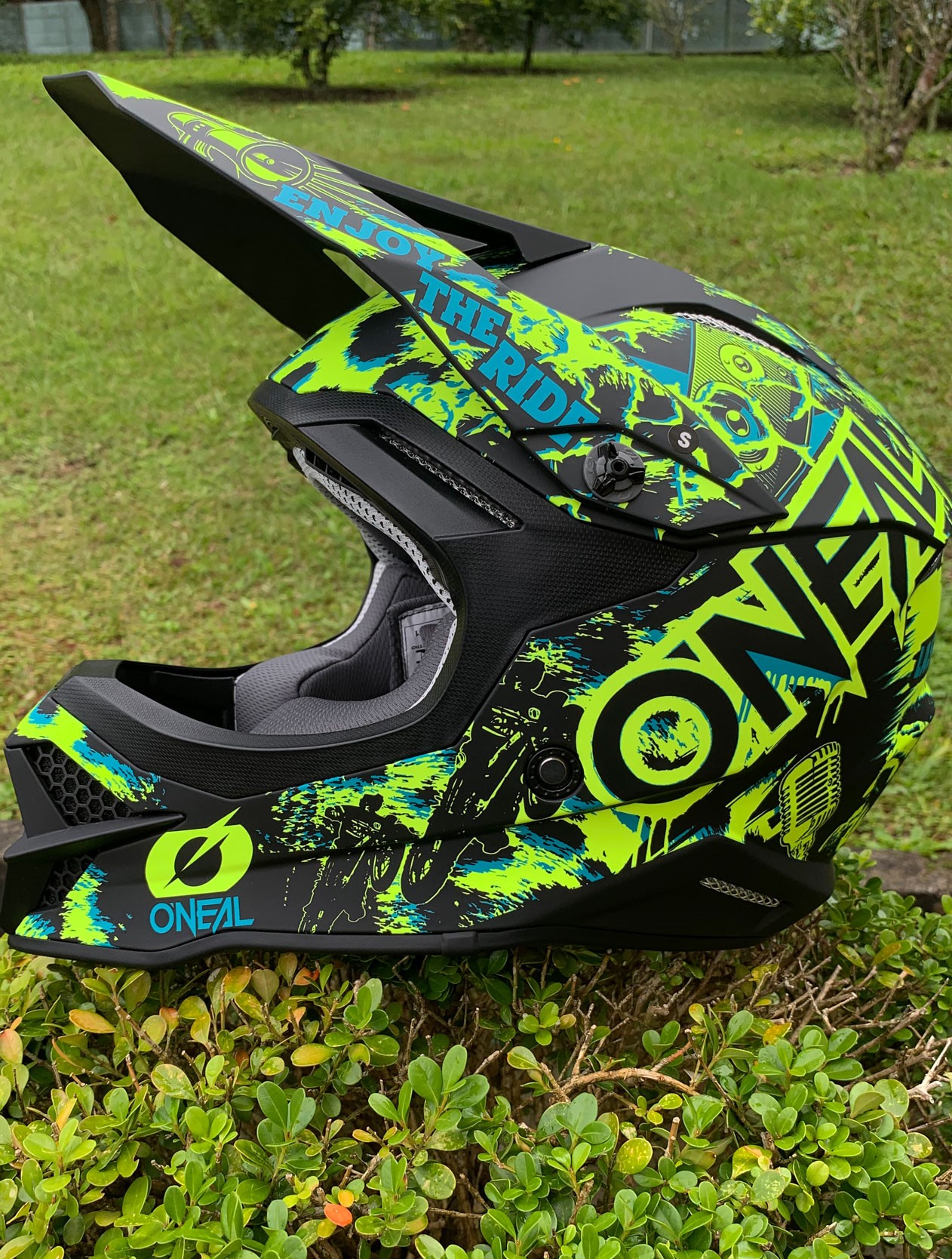 Com pala ajustável, o Capacete motocross Oneal 3Series Assault V.22 possibilita que a versatilidade para o uso em trilhas e pistas nas mais variadas condições de luz e clima sejam muito maiores, ajudando a diminuir a incidência da luz e até mesmo de chuva diretamente sobre o óculos motocross.