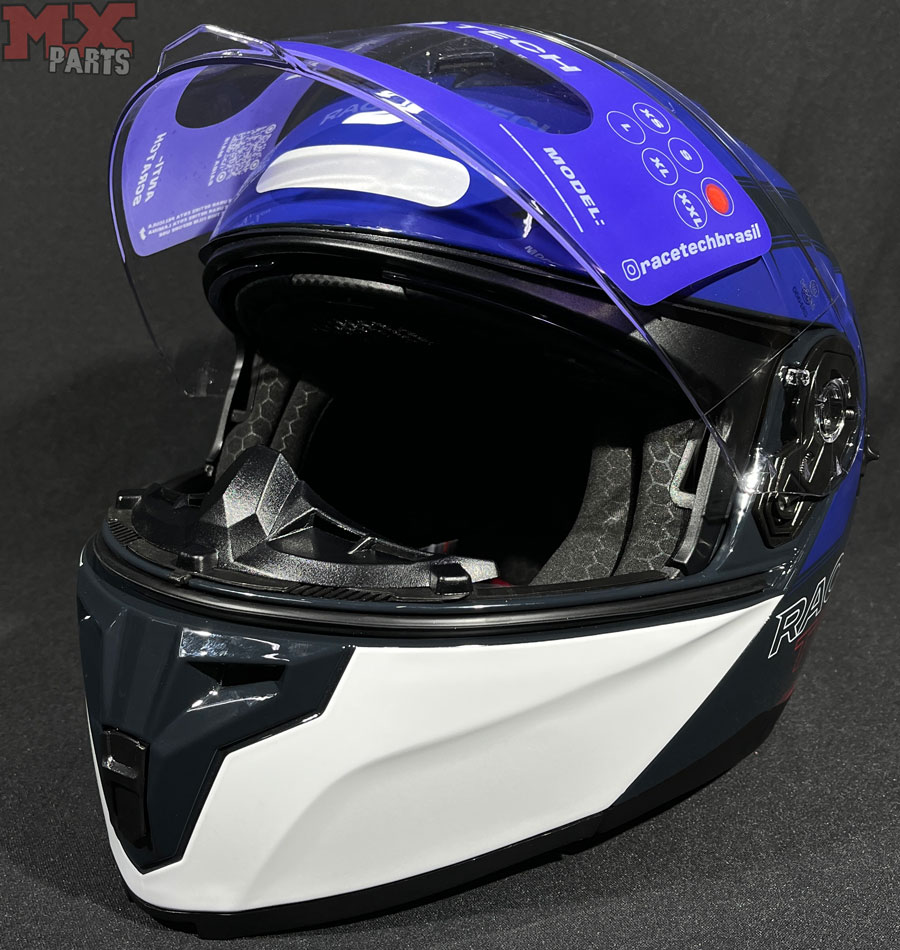estrutura do Capacete Race Tech Signal Active Articulado é produzida em ABS de alta resistência, com excelente capacidade de absorver impactos e distribuir a energia gerada em colisões.