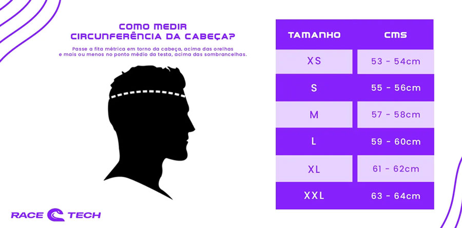 Confira as medidas do Capacete Race Tech Signal Articulado: