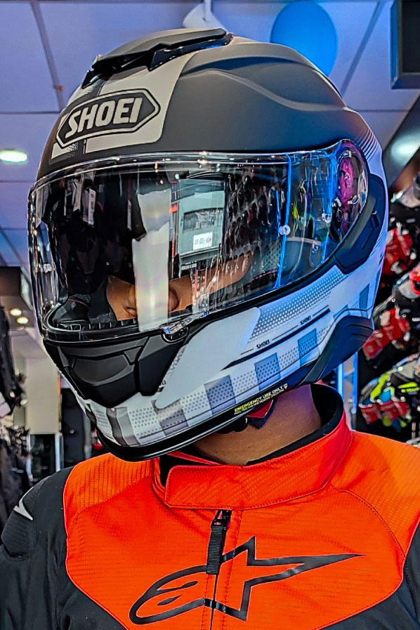 Para ainda mais qualidade, a Shoei investiu em um design inovador para reduzir o barulho do vento sem comprometer a ventilação, utilizando forração interna com propriedades acústicas e um novo sistema de vedação da viseira, permitindo uma experiência de pilotagem mais silenciosa e confortável, especialmente em viagens de longa distância.