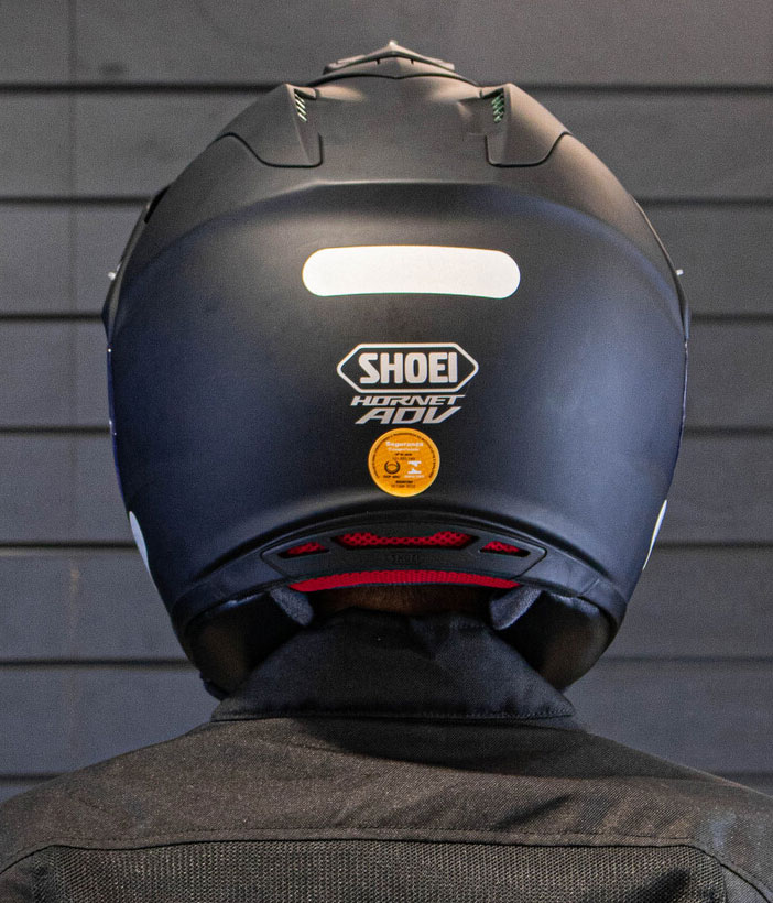 O Capacete Shoei Hornet ADV possui formato aerodinâmico, que minimiza a resistência ao vento e reduz a fadiga em pilotagens mais longas.