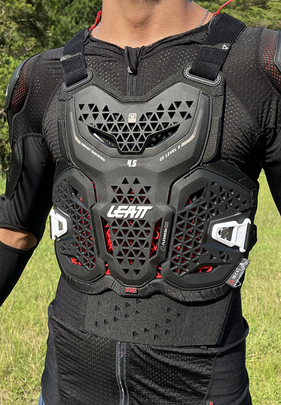 Acelere nos seus treinos e provas com muito mais proteção, conforto e segurança, com o Colete Integral Leatt 4.5 Evo.