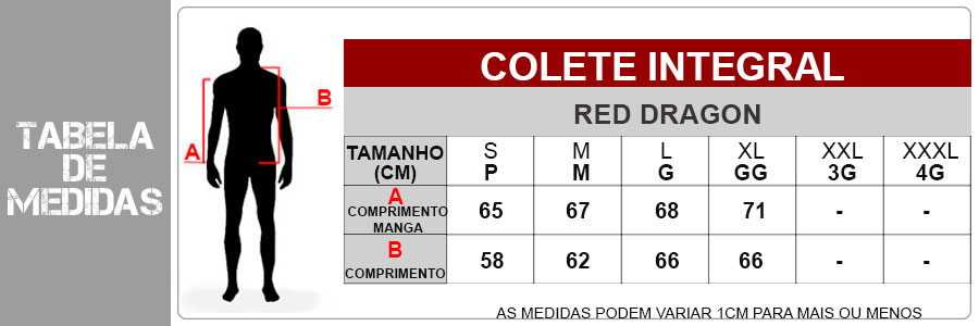 Quer saber qual a medida ideal para o Colete Integral Red Dragon Racing ?
