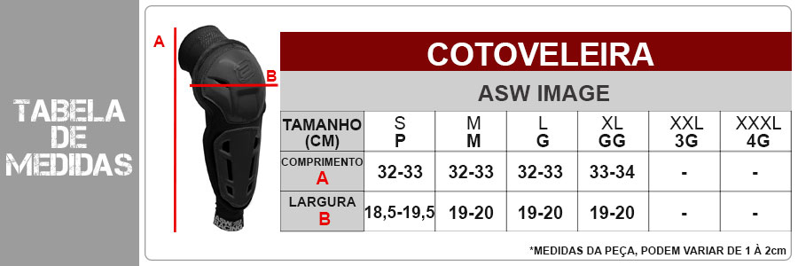 Cotoveleira ASW Image conta com qualidade de placas para cotovelo e antebraço que proporcionam segurança contra impactos leves com qualidade para sua pilotagem pelas trilhas e até nas pistas.
