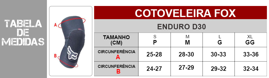 Qual a medida correta para a Cotoveleira Fox Enduro D30?