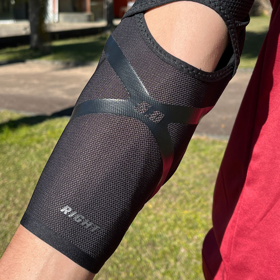 • Silicone nas barras - com sistema de encaixe simples, o silicone nas barras auxilia na fixação junto aos braços, evitando que a cotoveleira se desloque mesmo em maiores movimentações