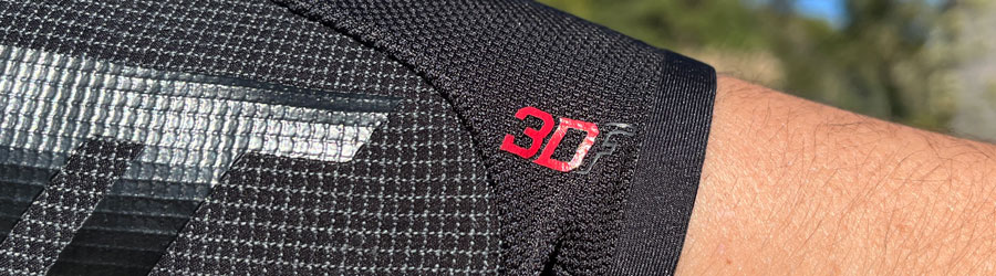 Cotoveleira motocross Leatt 3DF 5.0 Evo possui impressões em silicone no interior das barras, que oferecem uma fixação segura junto aos braços, mesmo em maiores movimentações sob as pedaleiras.
