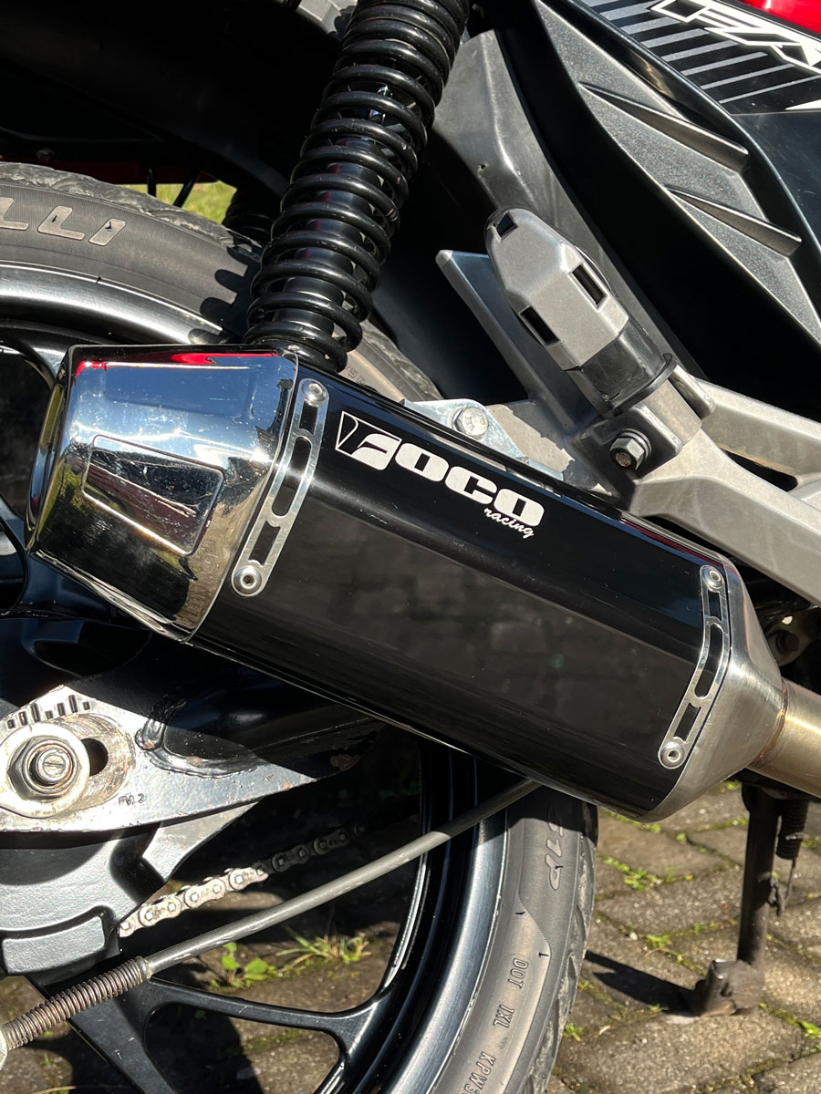 Com perfil F2, o Escapamento Foco Racing para Honda CG 160 proporciona o equilíbrio ideal entre fluxo de gases, sonoridade esportiva e eficiência de escapamento.