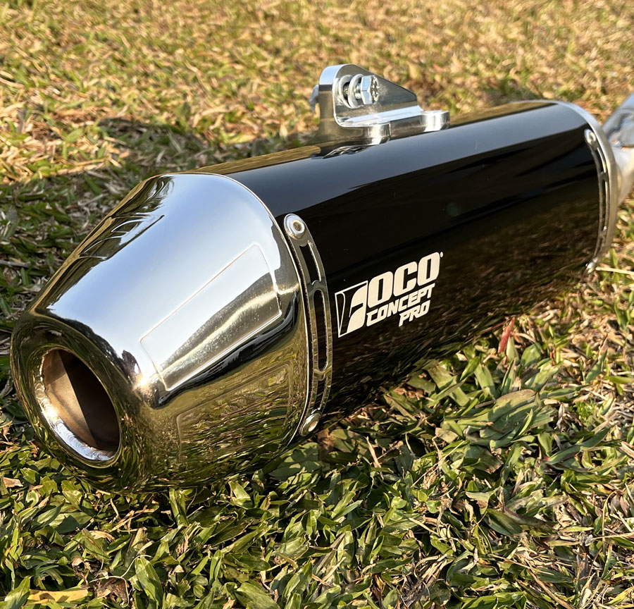 Concept Pro garante alta resistência ao calor produzido pelas peças do motor, graças ao seu escapamento fabricado em aço inox 304 e seu tubo em alumínio anodizado, que também proporcionam uma ótima resistência contra possíveis impactos durante suas trilhas e/ou pistas.