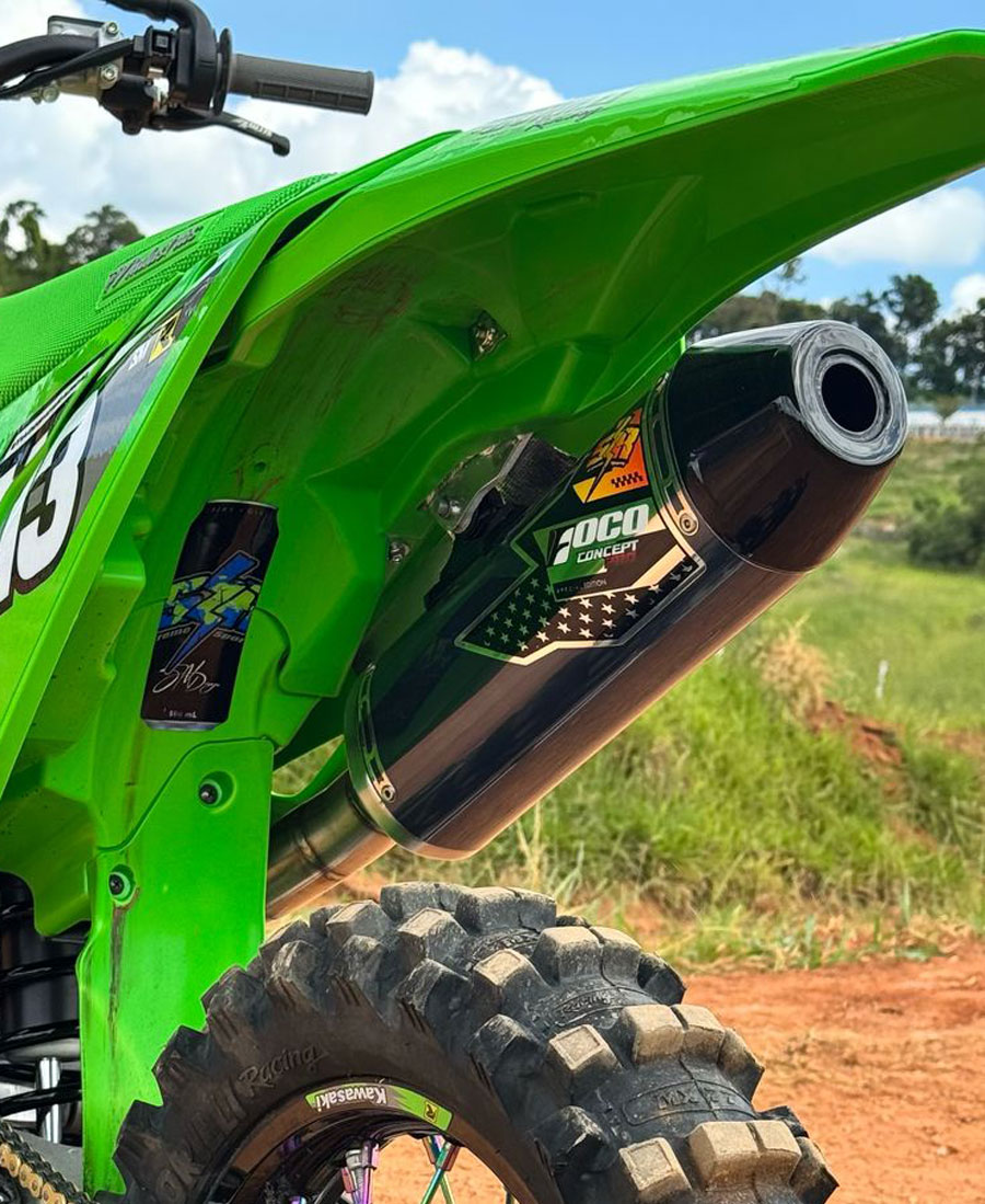 A edição especial Show Radical do Escape Foco Racing KXF 450 24/25 oferece cores e um adesivo exclusivo para deixar sua moto com um design único, garantindo muito mais estilo para encarar os desafios do motocross.