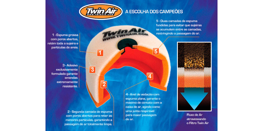 Produzido com espumas que garantem melhor filtragem do ar, e ajudam a manter em dia a performance e a durabilidade das peças do motor, tudo com a qualidade Twin Air.
