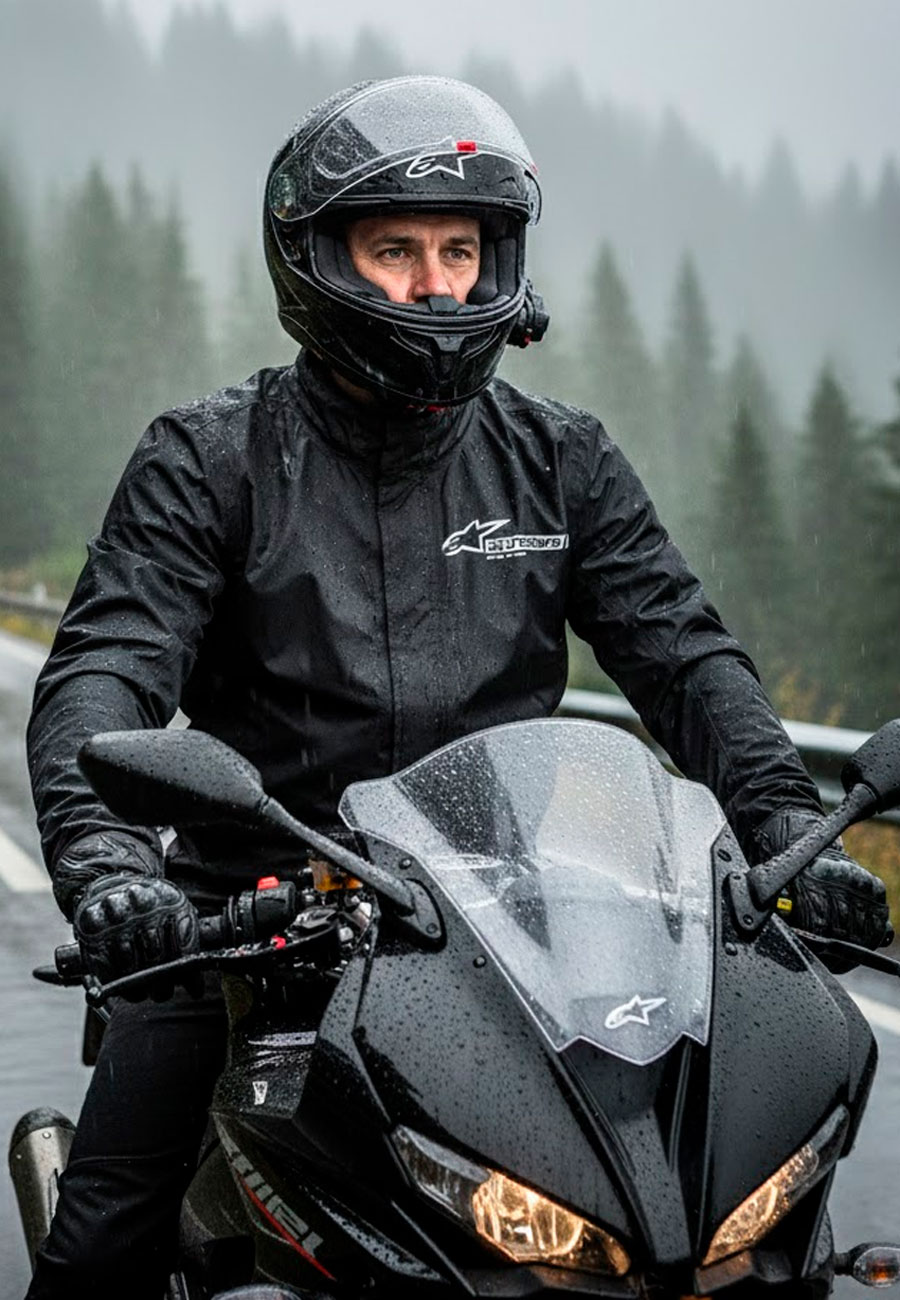 Conforto e proteção para pilotar em dias de chuva é com a Jaqueta Alpinestars Hurricane Rain V2.
