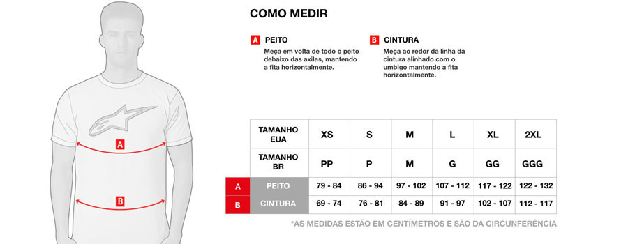 Confira as medidas da Jaqueta Alpinestars Mission V2 Midlayer: