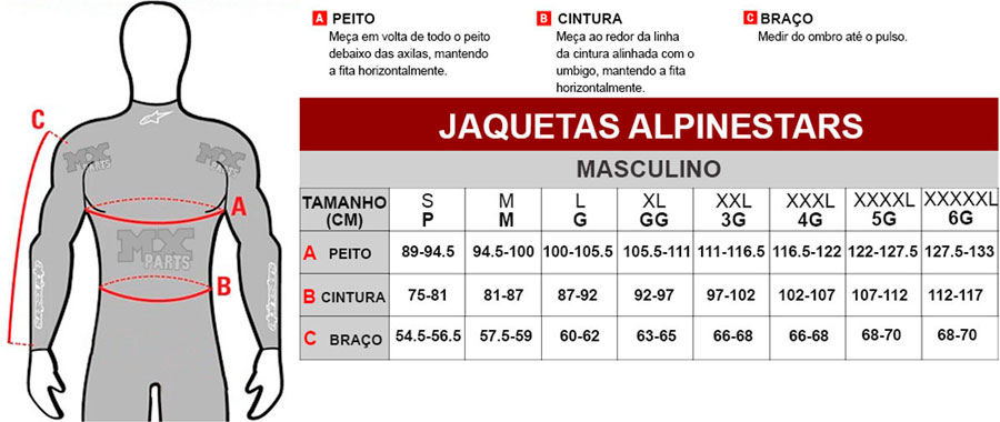 Confira as medidas da Jaqueta Alpinestars T SPS Ignition WP - Impermeável: