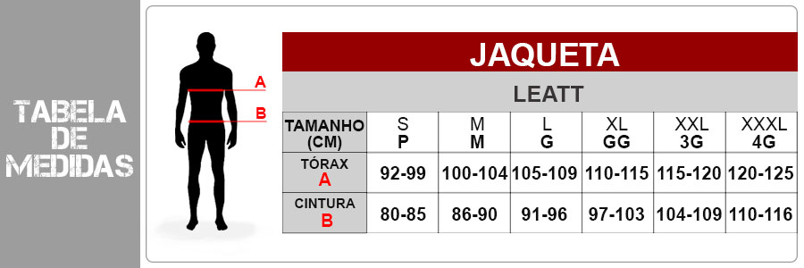 Confira as medidas da Jaqueta Leatt Adventure Flowtour 7.5 - Impermeável: