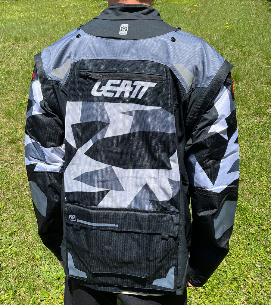 Com bolso externo na parte posterior, a Jaqueta Leatt Enduro 4.5 X-Flow permite o uso de reservatórios de hidratação de até 3 litros, favorecendo ainda mais a praticidade de uso.