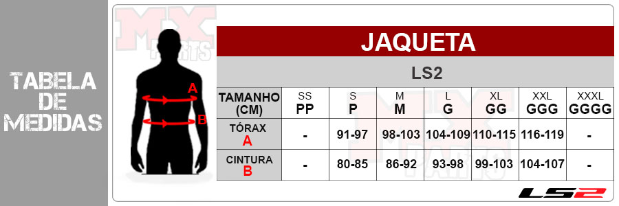 • Proteções - protetores removíveis de ombro e cotovelo certificados CE EN1621-1:2012 Nível 1, além de espaços para protetor de tórax LS2 CE e protetor traseiro LS2 851 Nível 2 (vendidos separadamente)