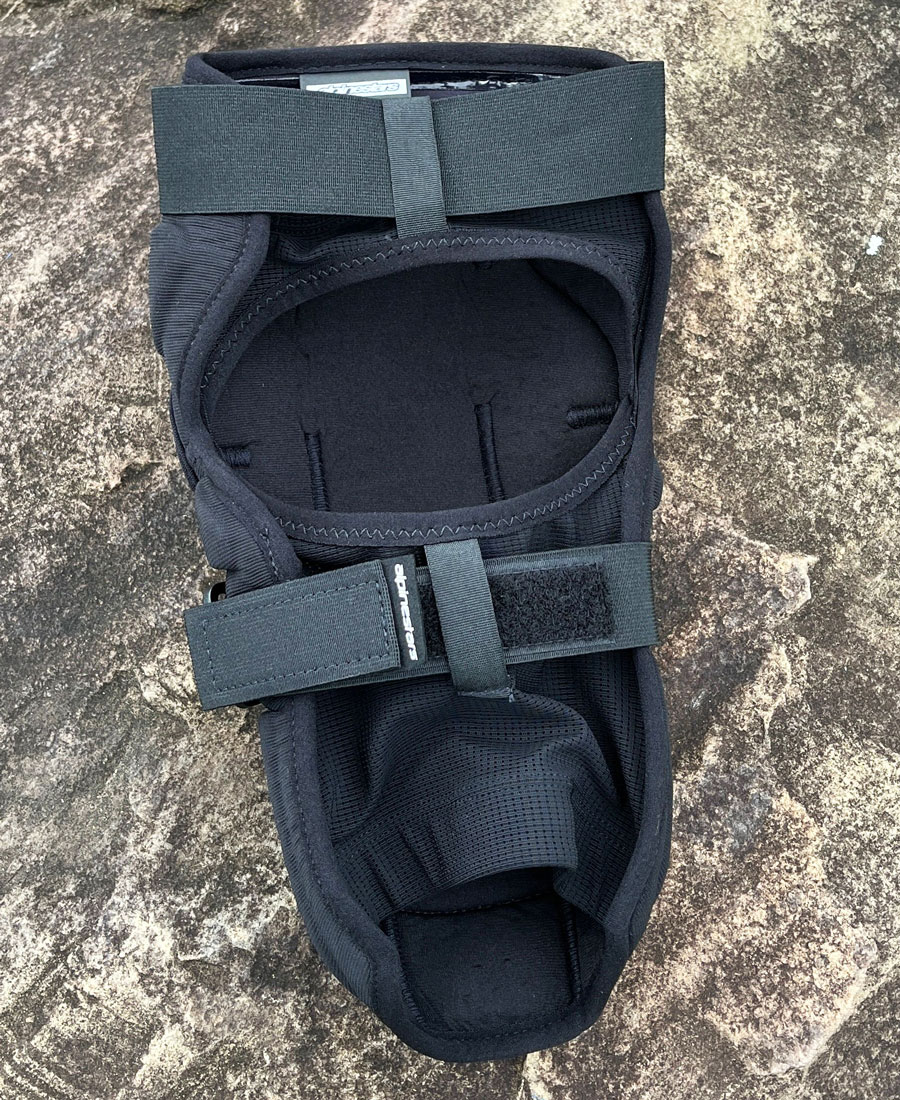 • Interior com tiras de silicone - localizadas na parte superior e inferior da joelheira, mantendo sua fixação segura e evitando que ela escorregue mesmo em situações de maior umidade
