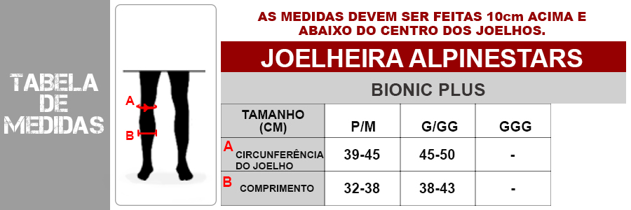 Confira as medidas da Joelheira Alpinestars Bionic Plus :