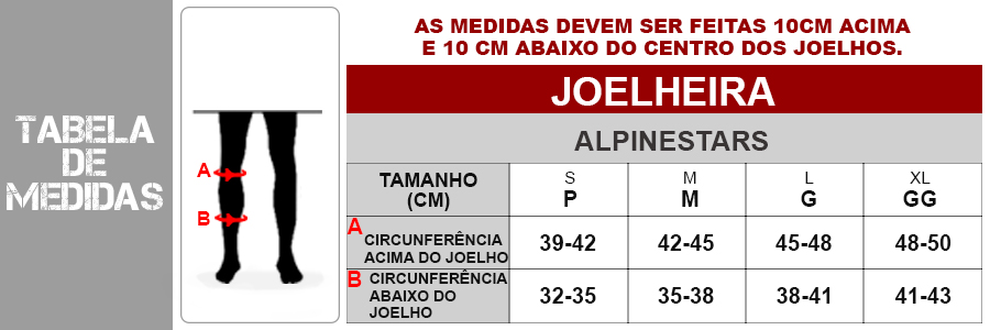 Confira as medidas da Joelheira Alpinestars Paragon Plus: