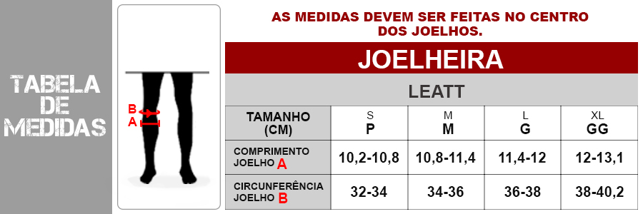 Confira as medidas da Joelheira Articulada Leatt X-Frame:
