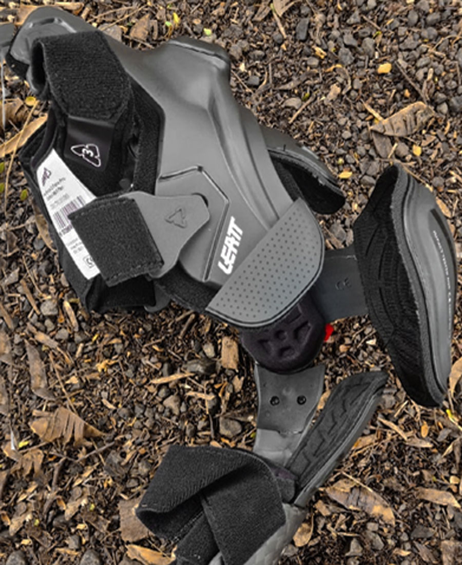 Sua pilotagem protegida em alto nível é com a Joelheira Articulada Leatt C Frame Pro Carbon