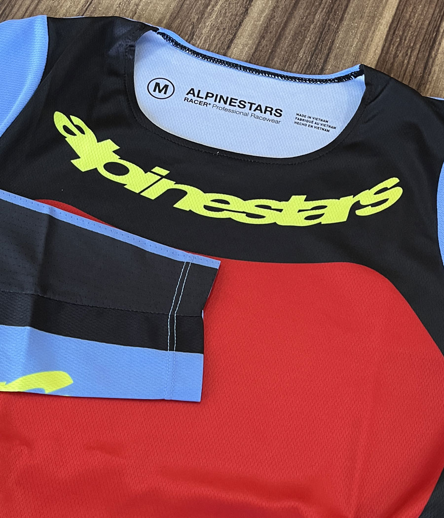 Sua composição em poliéster de alta resistência e qualidade, que garante conforto elevado para máximo desempenho nas pistas, mantendo toda a qualidade da Camisa motocross Alpinestars Racer Ocuri 2025.