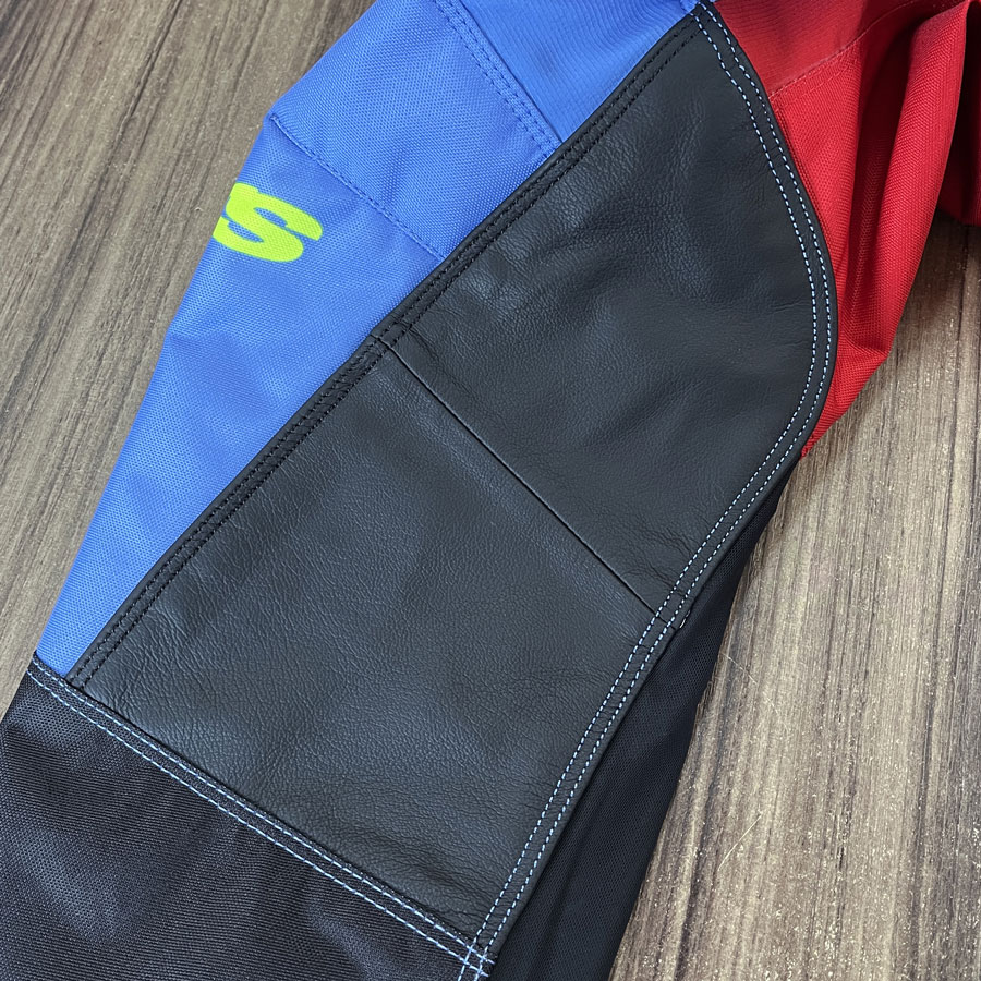 Calça Alpinestars Racer Ocuri 2025 possui anti chamas em couro de cabra na parte interior das pernas, que elevam a proteção contra os atritos, abrasões e o calor gerado pelas peças do motor, mantendo a segurança para encarar os desafios mais extremos.