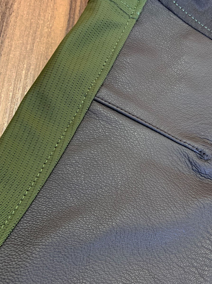 • Interior dos joelhos em couro bovino - proteção contra o calor das peças do motor e dos atritos causados pela movimentação
