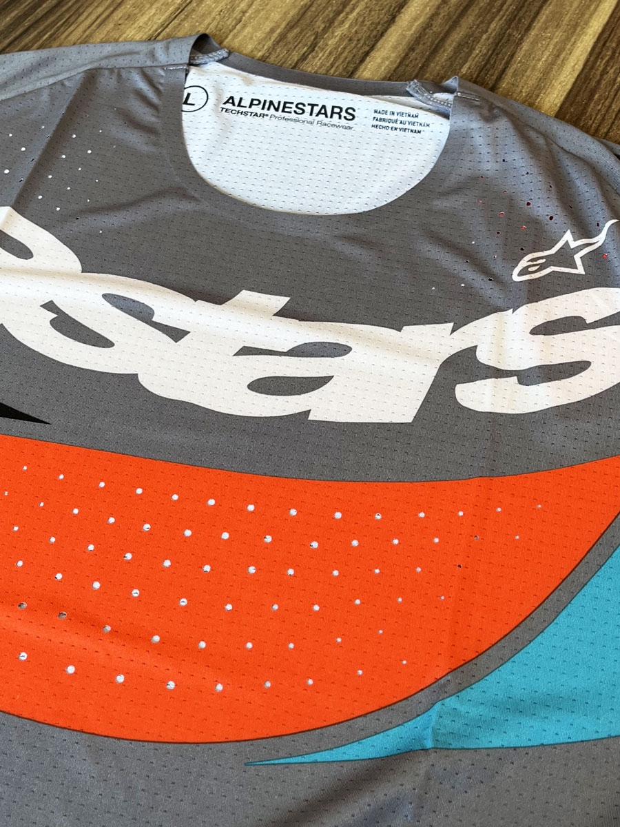 A Camisa motocross Alpinestars Techstar Dreem 2025 possui tecido tratado com controle de umidade, que proporciona maior capacidade de absorção e liberação do suor, elevando o conforto para pilotar em dias de calor.