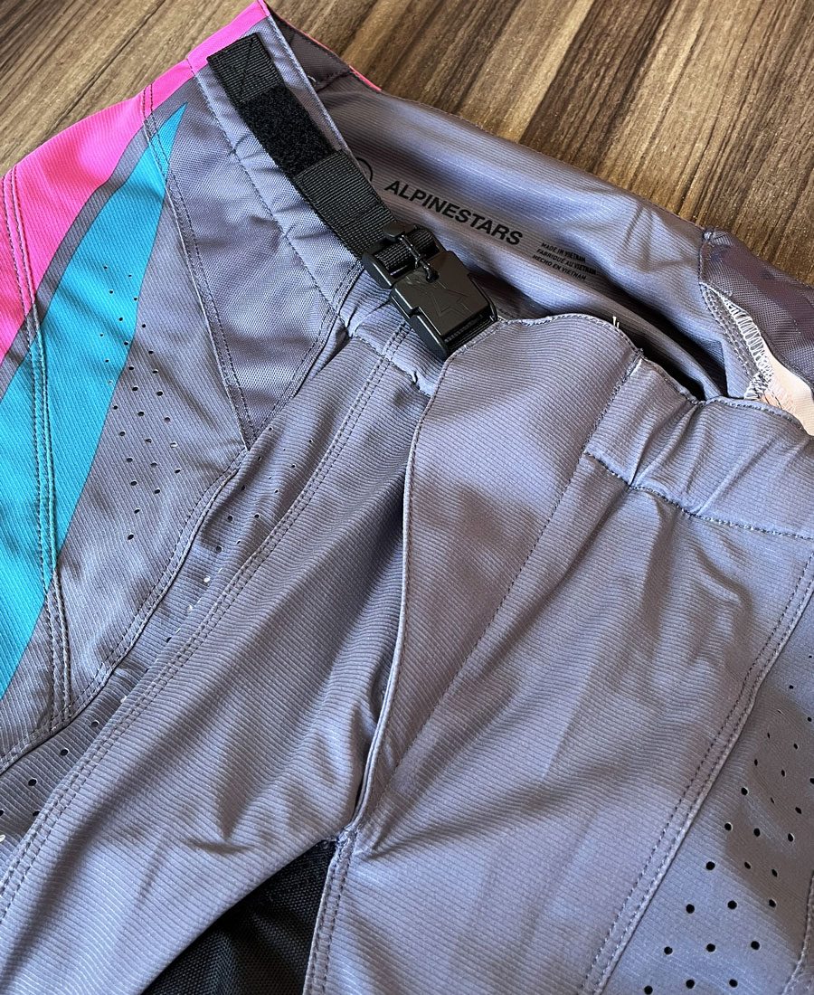 Com silicone na parte interna da barra, a Calça motocross Alpinestars Techstar Dreem 2025 favorece a melhor fixação junto a camisa de motocrossassim como seu sistema de fecho magnético com travamento automático que possibilita uma maior capacidade de ajustes e segurança junto ao corpo.