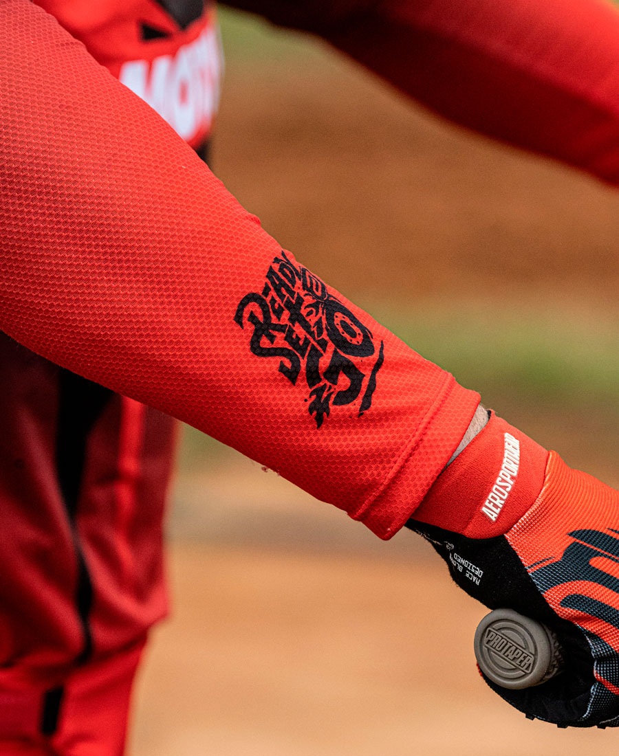 • Apliques de silicone na barra traseira - auxiliam a manter a camisa segura dentro das calças de motocross, evitando que ela fique se movendo mesmo em movimentações mais intensas