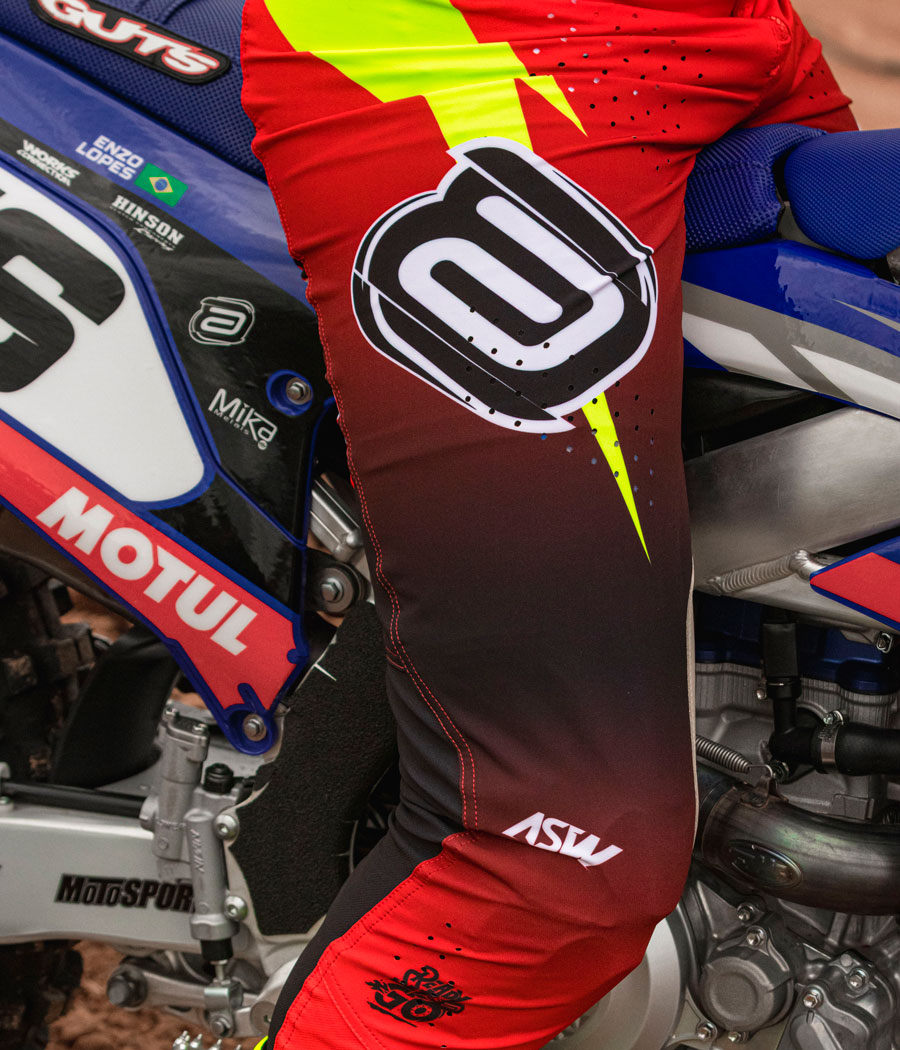 Estilo e conforto para máximo desempenho nas trilhas e pistas, é com o exclusivo Conjunto ASW Concept Origins Réplica Enzo Lopes.