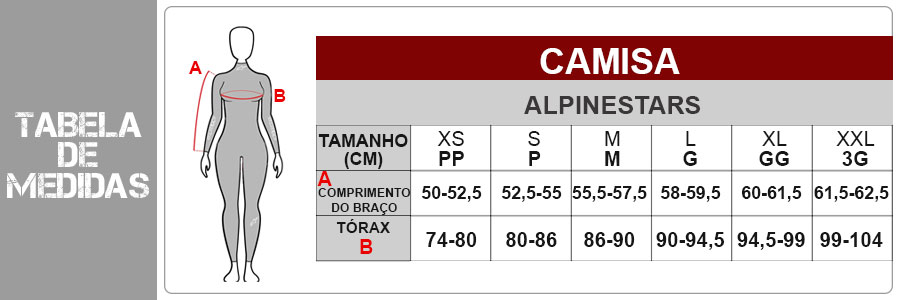 Confira as medidas da Camisa Feminina Alpinestars Fluid Stella 2023: