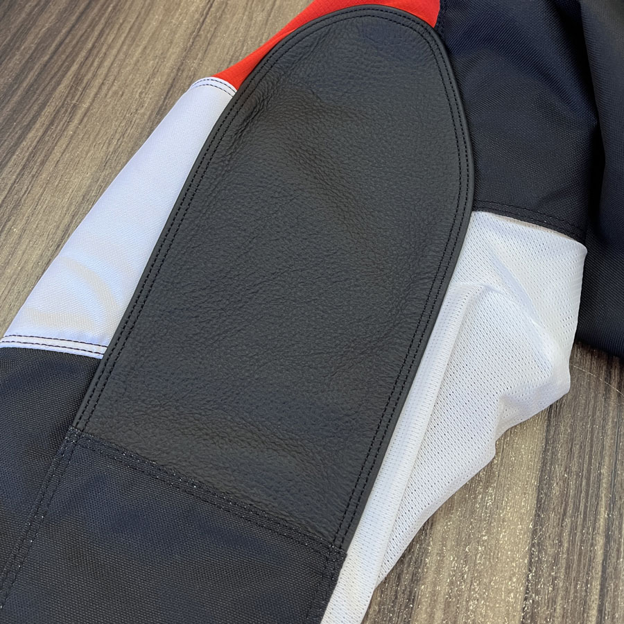 A construção da Calça Fox 180 conta com a composição de multi tecidos que mesclam o poliéster, a poliamida e elastano nas áreas de maior proteção, incluindo a região interna dos joelhos com painel em couro bovino natural, além dos reforços nas regiões de maior necessidade como o assento, formando uma resistência e durabilidade superiores para que a pilotagem seja muito mais segura em qualquer condição.