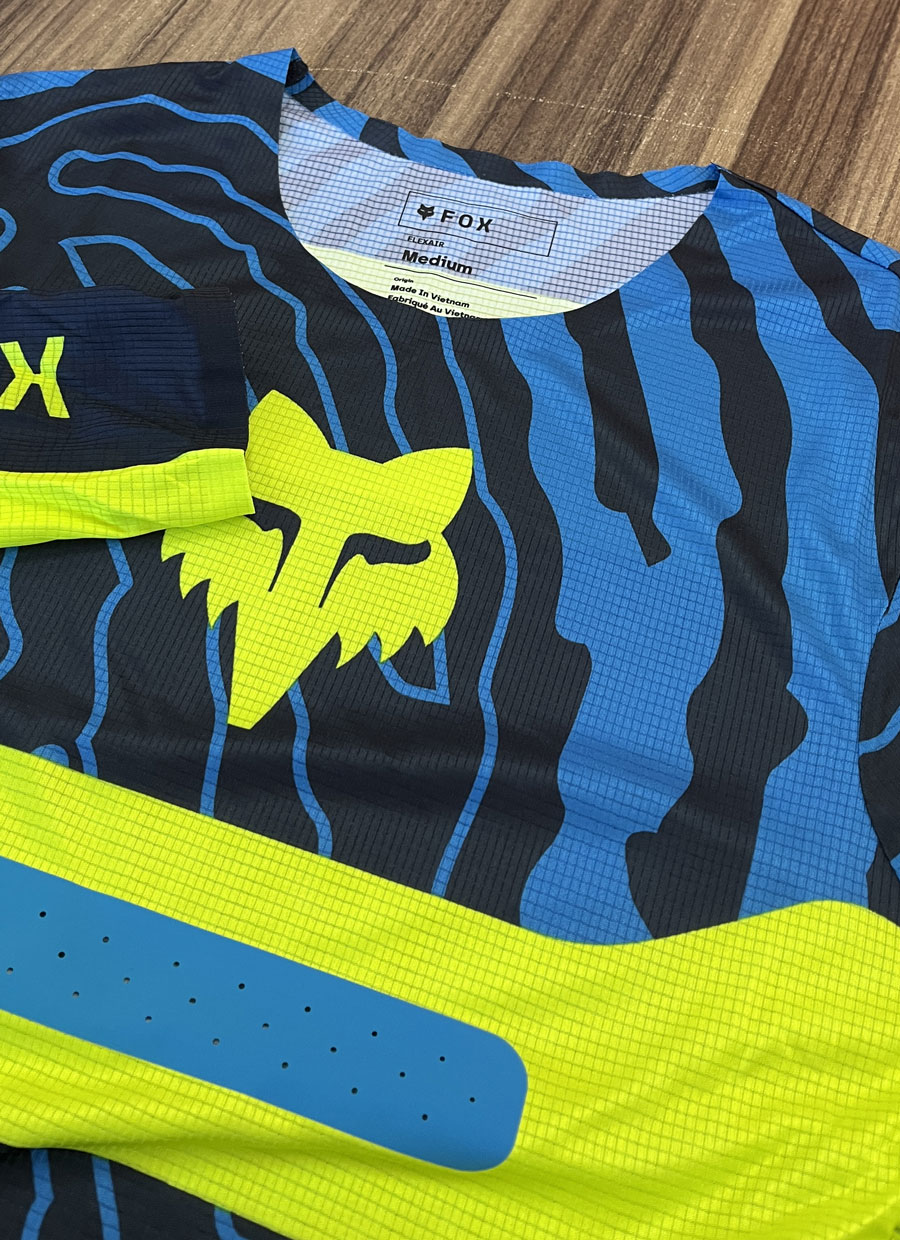 Camisa Fox Flexair Impression 2025 também conta com grafismo sublimado - tecnologia ideal para garantir mais durabilidade, mantendo as cores e desenhos vivos por mais tempo para o máximo em qualidade Fox para sua pilotagem.